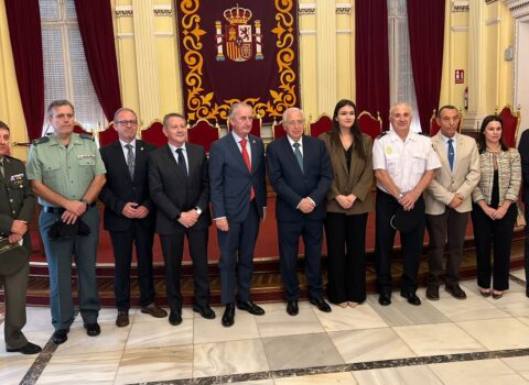 La Comandancia General de Melilla entrega la Enseña Nacional al Colegio de Médicos durante el acto institucional del Día de la Fiesta Nacional