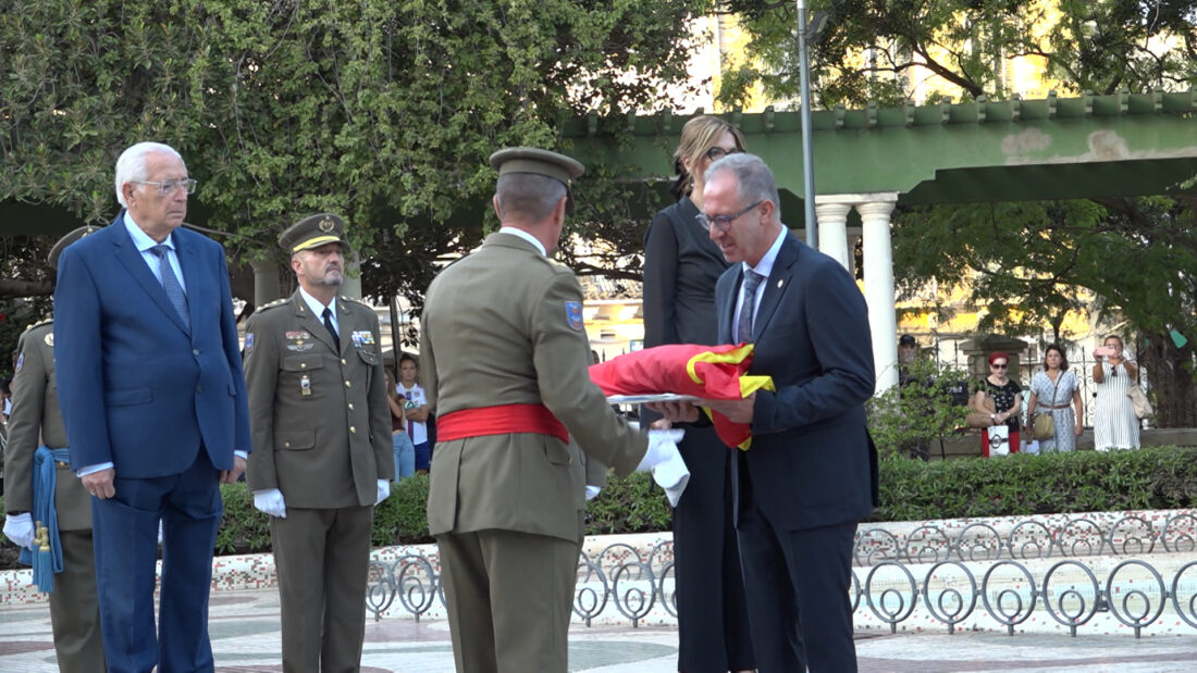 La Comandancia General de Melilla entrega la Enseña Nacional al Colegio de Médicos durante el acto institucional del Día de la Fiesta Nacional